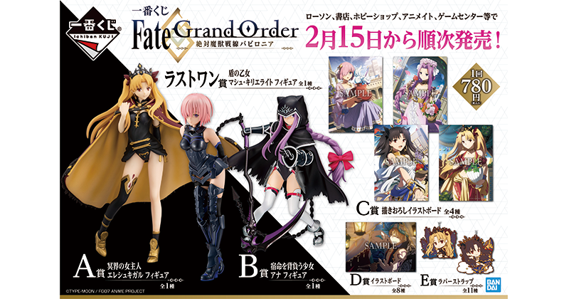 2020年2月15日(土)から、ローソン、書店、ホビーショップ、アニメイト、ゲームセンター等で「一番くじ Fate/Grand Order-絶対魔獣戦線バビロニア-」が順次発売いたします。