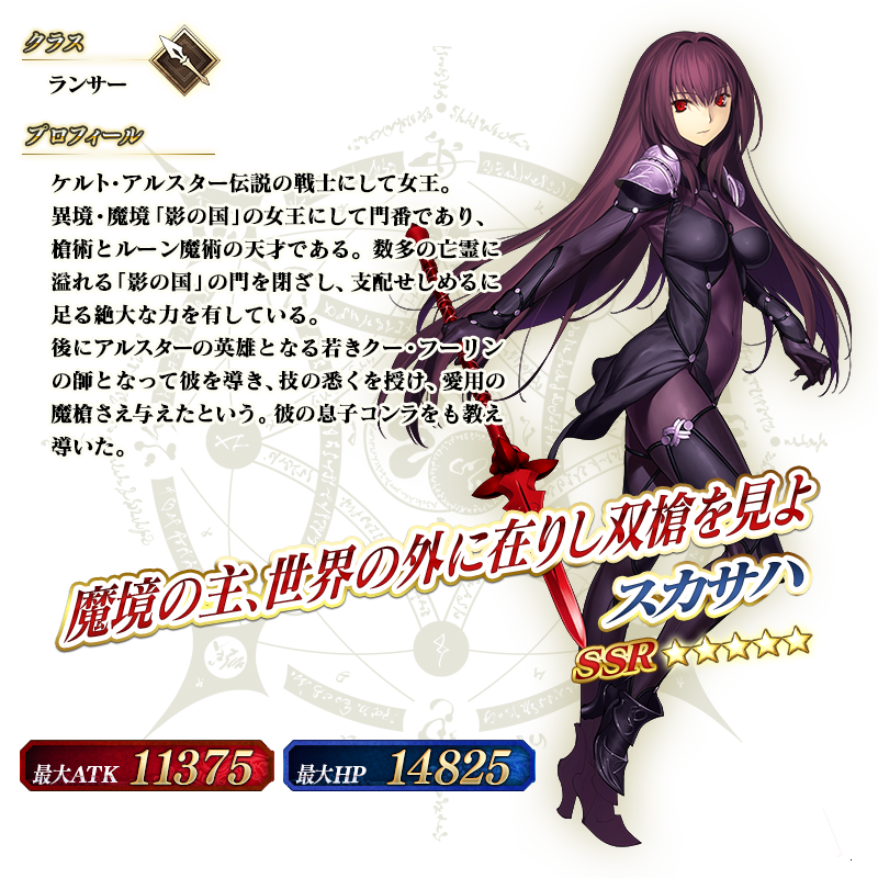 ※上記の「★5(SSR)スカサハ(ランサー)」のイラストは霊基再臨第2段階のものです。