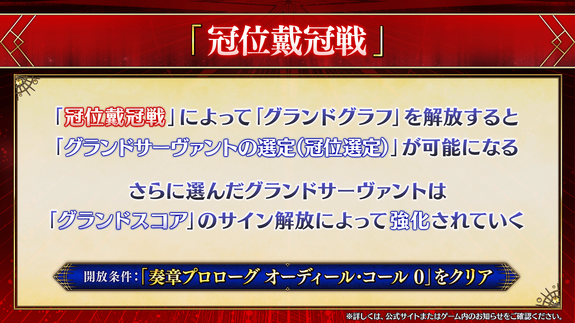 詳細は「冠位戴冠戦」についてのお知らせをご覧ください。