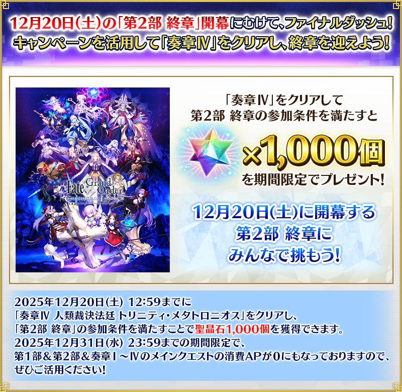 「第2部 終章」開幕に向けて、奏章Ⅳクリアのラストスパートを応援する期間限定の特別企画となります。