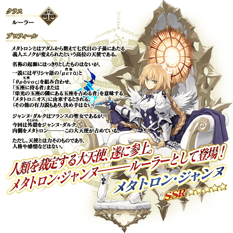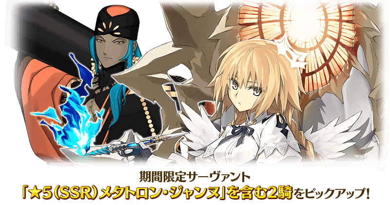 3300万DL突破を記念して、期間限定サーヴァント「★5(SSR)メタトロン・ジャンヌ」を含む2騎をピックアップ!