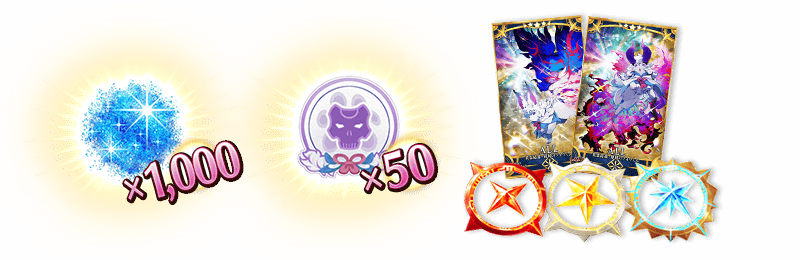 ミッションをクリアすることで極星のトーチ1個、明星のトーチ1個、新星のトーチ1個、星光の砂1,000個、英霊結晶・終局のフォウくんALL★5(HP)3枚、英霊結晶・原初のフォウくんALL★5(ATK)3枚、獣の足跡〔アサシン〕50個を獲得できます!