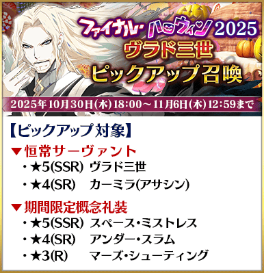 ◆「ファイナル・ハロウィン2025ピックアップ3召喚」期間◆