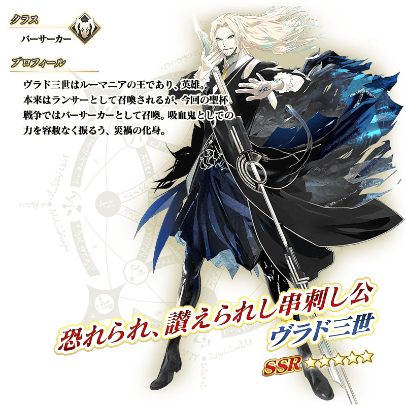 ※上記の「★5(SSR)ヴラド三世」のイラストとセイントグラフは霊基再臨第2段階のものです。