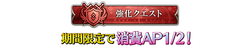 下記の期間中、期間限定でイベントボーナスサーヴァントの「強化クエスト」の消費APが1/2になります!(バトルにおいて撤退した場合でも、同様の消費量になります)