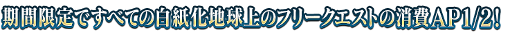下記の期間中、白紙化地球上におけるフリークエストの消費APが1/2になります!