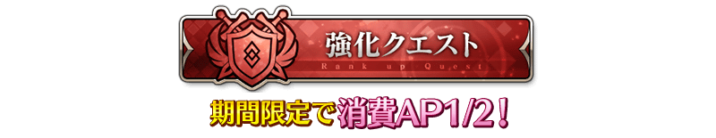 下記の期間中、期間限定でイベントボーナス対象サーヴァントの「強化クエスト」の消費APが1/2になります!(バトルにおいて撤退した場合でも、同様の消費量になります)