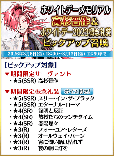 高杉晋作&ホワイトデー2023概念礼装ピックアップ召喚