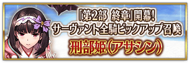 ※上記の「★5(SSR)刑部姫(アサシン)」のイラストは霊基再臨第2段階のものです。