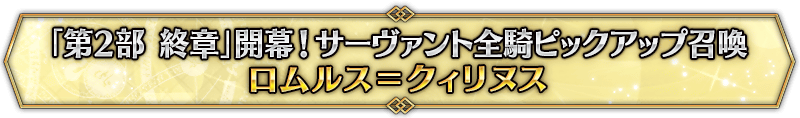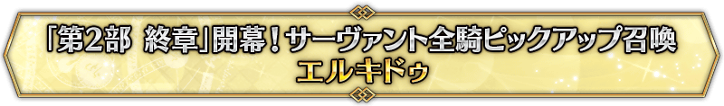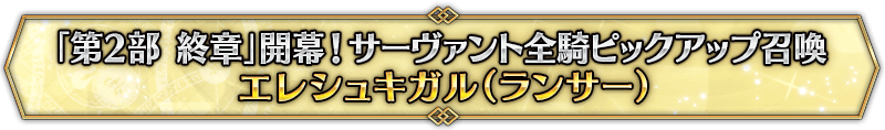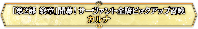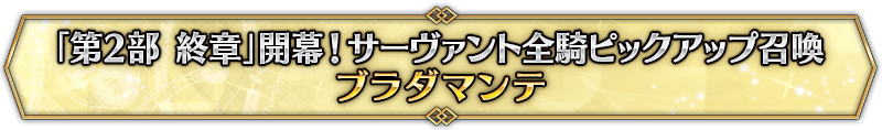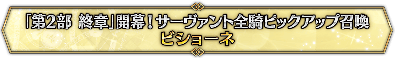 なお、本召喚は『「第2部 終章」開幕! サーヴァント全騎ピックアップ召喚』ピックアップスケジュールに記載された日程で召喚内容が切り替わりますが、開催期間内において複数回おこなわれる同名ピックアップ召喚は召喚回数がリセットされずに引き継がれます。