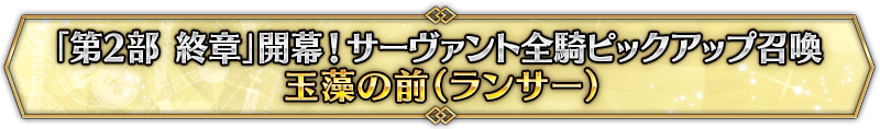 ※『「第2部 終章」開幕! 英霊極点ピックアップ召喚』では、該当サーヴァントはピックアップ対象ではございません。