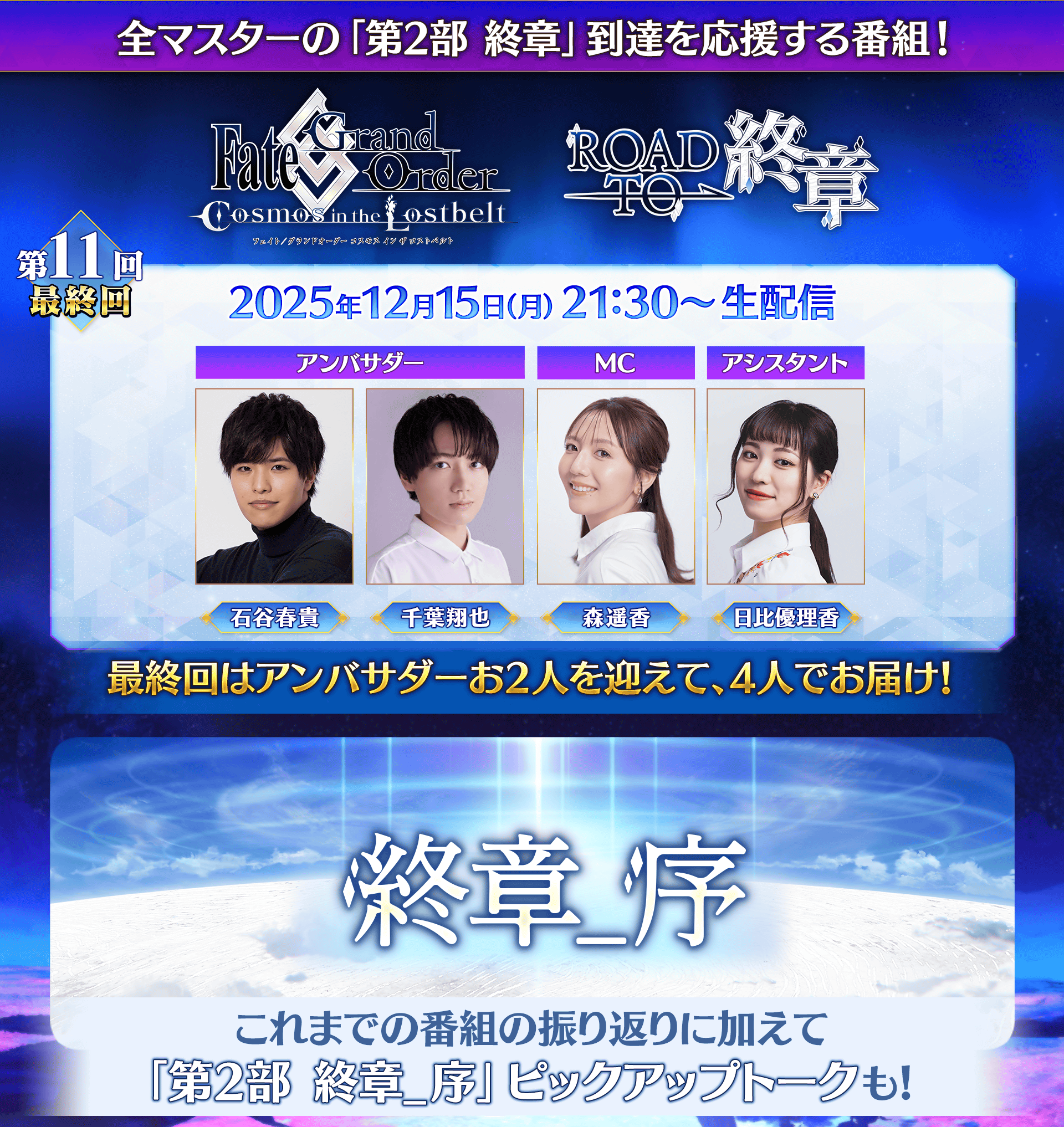 トーク番組「Road to 終章」第11回は12月15日(月) 21:30からの配信となりますのでお見逃しなく!