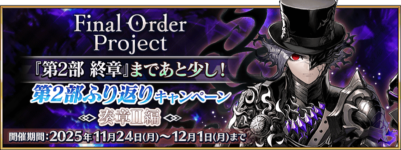 ■「Final Order Project 『第2部 終章』まであと少し!第2部ふり返りキャンペーン ~奏章Ⅱ編~」詳細情報