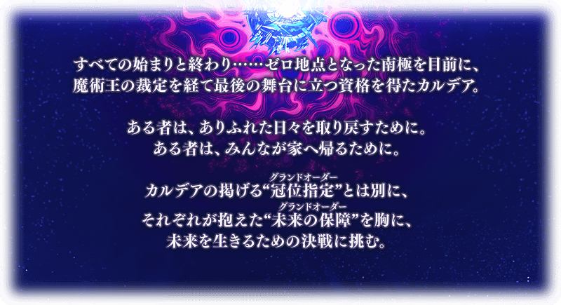 南極を目前に、魔術王の裁定を経て最後の舞台に立つ資格を得たカルデア。