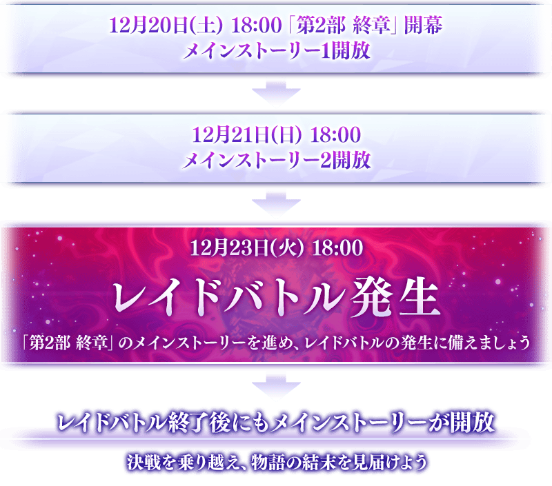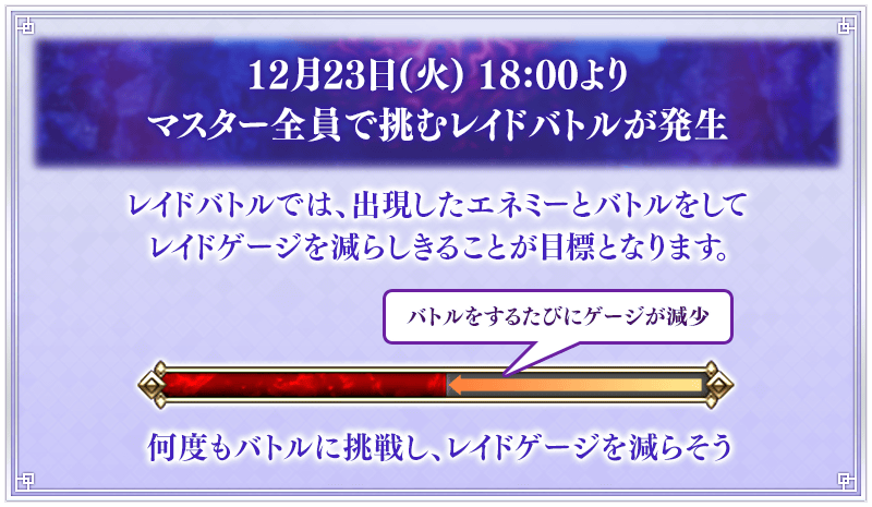 12月23日(火) 18:00からは「第2部 終章」に参加中のすべてのマスターと協力して強大なエネミーに挑むレイドバトルも発生。
