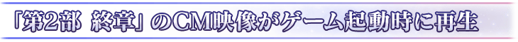期間中、「第2部 終章」のCM映像はマイルームのマテリアル(ストーリー)に登録され、期間終了後に削除されます。