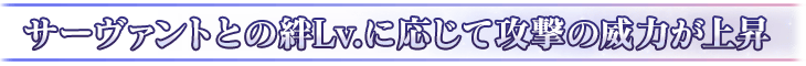 レイドバトルでは、バトルに参加しているサーヴァントの絆Lv.が5以上の場合、Lv.に応じて攻撃の威力がアップしていきます。