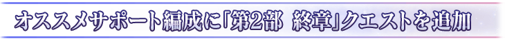 「第2部 終章」開幕にあわせて、「第2部 終章」の一部メインクエストがオススメサポート編成の対象に追加されました。