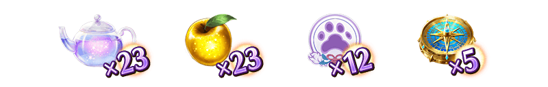 すべてのミッションをクリアすると、星見のティーポット23個、黄金の果実23個、獣の足跡12個、遡行の羅針盤5個をゲットできます!