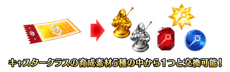 各日のデイリーミッションをすべて達成すると、キャスタークラスの育成素材「キャスターピース」「キャスターモニュメント」「術の輝石」「術の魔石」「術の秘石」の5種類の中から1つと交換できる「キャスター育成交換券」を獲得できます!