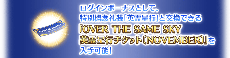 ※本ログインボーナスで獲得できる「OVER THE SAME SKY 英霊星行チケット〔NOVEMBER〕」で交換可能な「英霊星行」は、関西ブロックのもののみとなります。