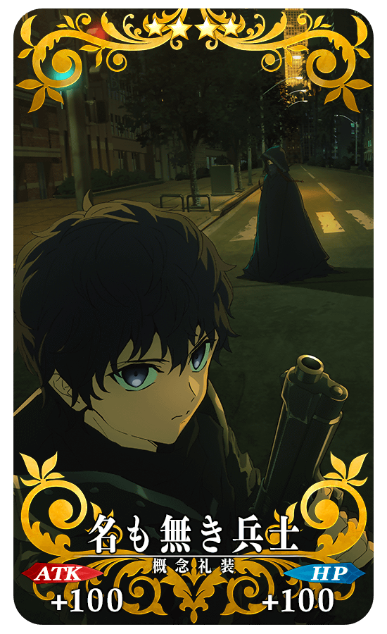 下記の期間中にログインすると、『TVアニメ「Fate/strange Fake」放送記念キャンペーン』限定概念礼装「★4(SR)名も無き兵士」1枚をプレゼントいたします!