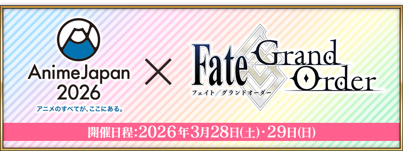 2026年3月28日(土)・29日(日)に東京ビッグサイトにて開催される「AnimeJapan 2026」に「Fate/Grand Order」ブースを出展いたします。