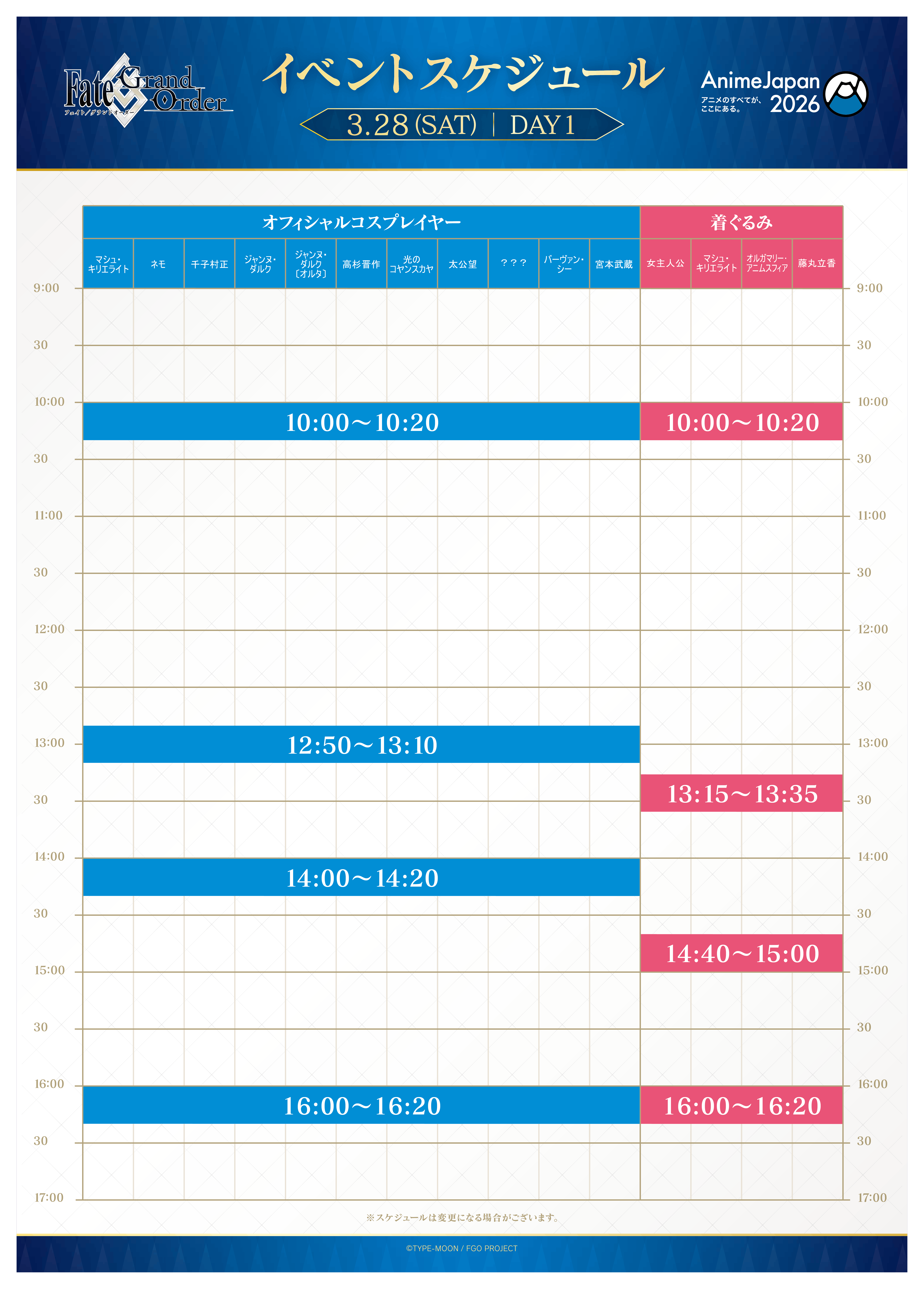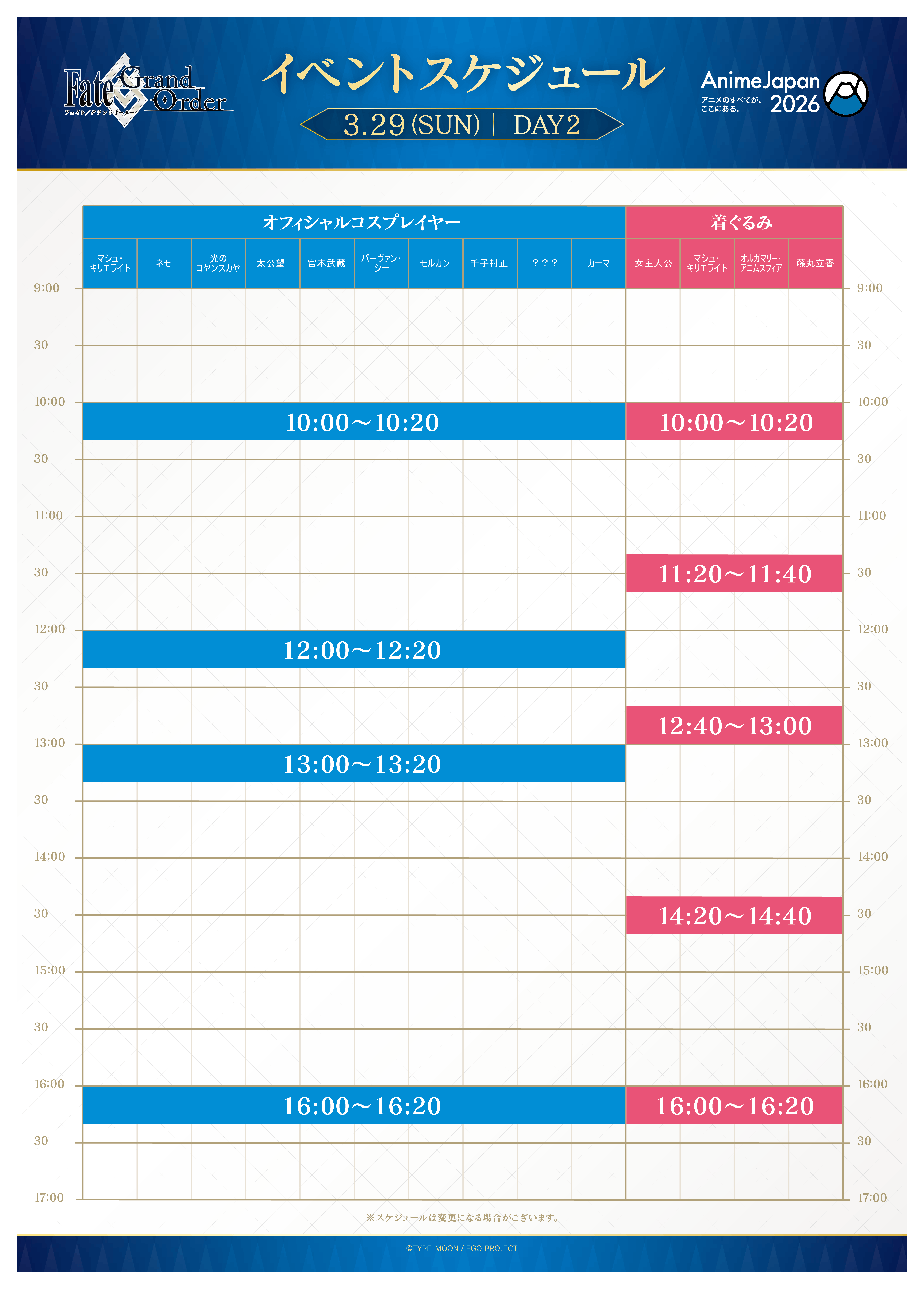 2026年3月28日(土)・29日(日)に東京ビッグサイトにて開催される「AnimeJapan 2026」に「Fate/Grand Order」ブースを出展いたします。