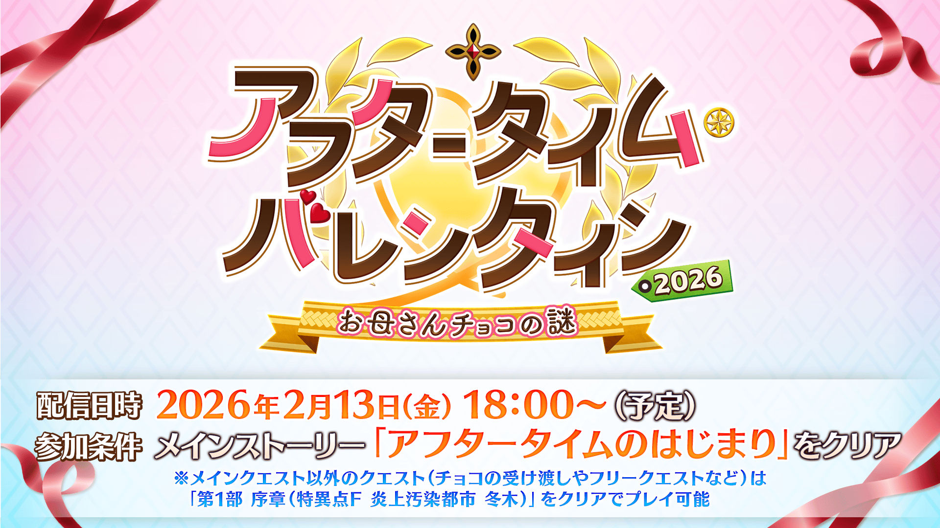 期間限定イベント「アフタータイム・バレンタイン2026 ~お母さんチョコの謎~」が2026年2月13日(金) 18:00より開幕予定であることを発表いたしました。
