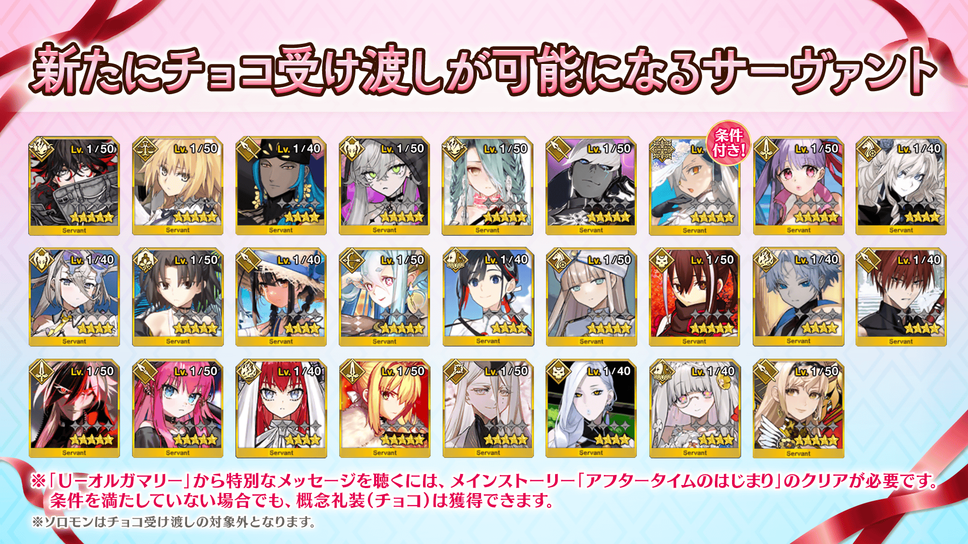 新たにチョコ受け渡しが可能になるサーヴァントは以下になります。