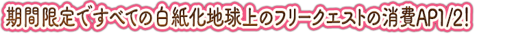 下記の期間中、白紙化地球上におけるフリークエストの消費APが1/2になります!