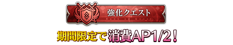 下記の期間中、期間限定でイベントボーナス対象サーヴァントの「強化クエスト」の消費APが1/2になります!(バトルにおいて撤退した場合でも、同様の消費量になります)