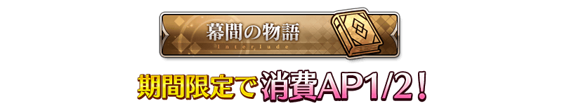 下記の期間中、期間限定でイベントボーナス対象サーヴァントの「幕間の物語」の消費APが1/2になります!(バトルにおいて撤退した場合でも、同様の消費量になります)