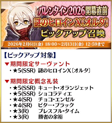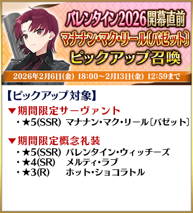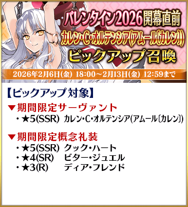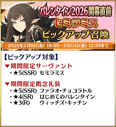 ◆「バレンタイン2026開幕直前ピックアップ召喚」期間◆