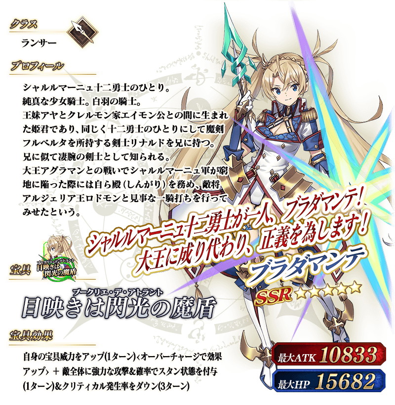 ※上記の「★5(SSR)ブラダマンテ」のイラストは霊基再臨第2段階のものです。