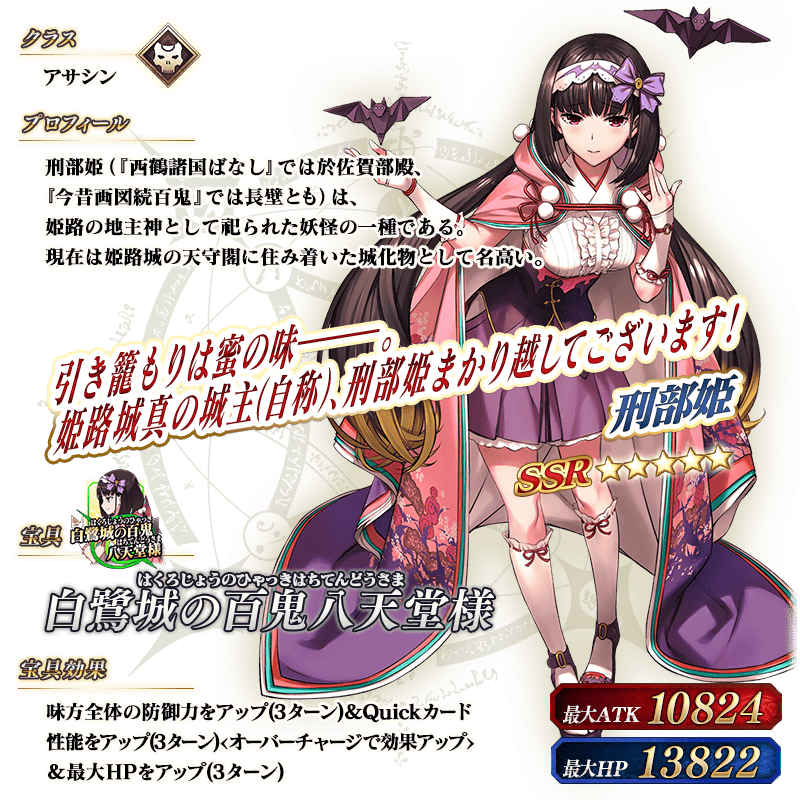 ※上記の「★5(SSR)刑部姫(アサシン)」のイラストは霊基再臨第2段階のものです。