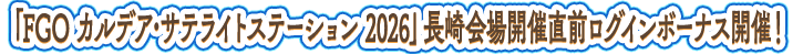 下記の期間中、「FGO カルデア・サテライトステーション 2026」長崎会場開催を記念して、「FGO カルデア・サテライトステーション 2026」長崎会場開催直前ログインボーナスを実施いたします!