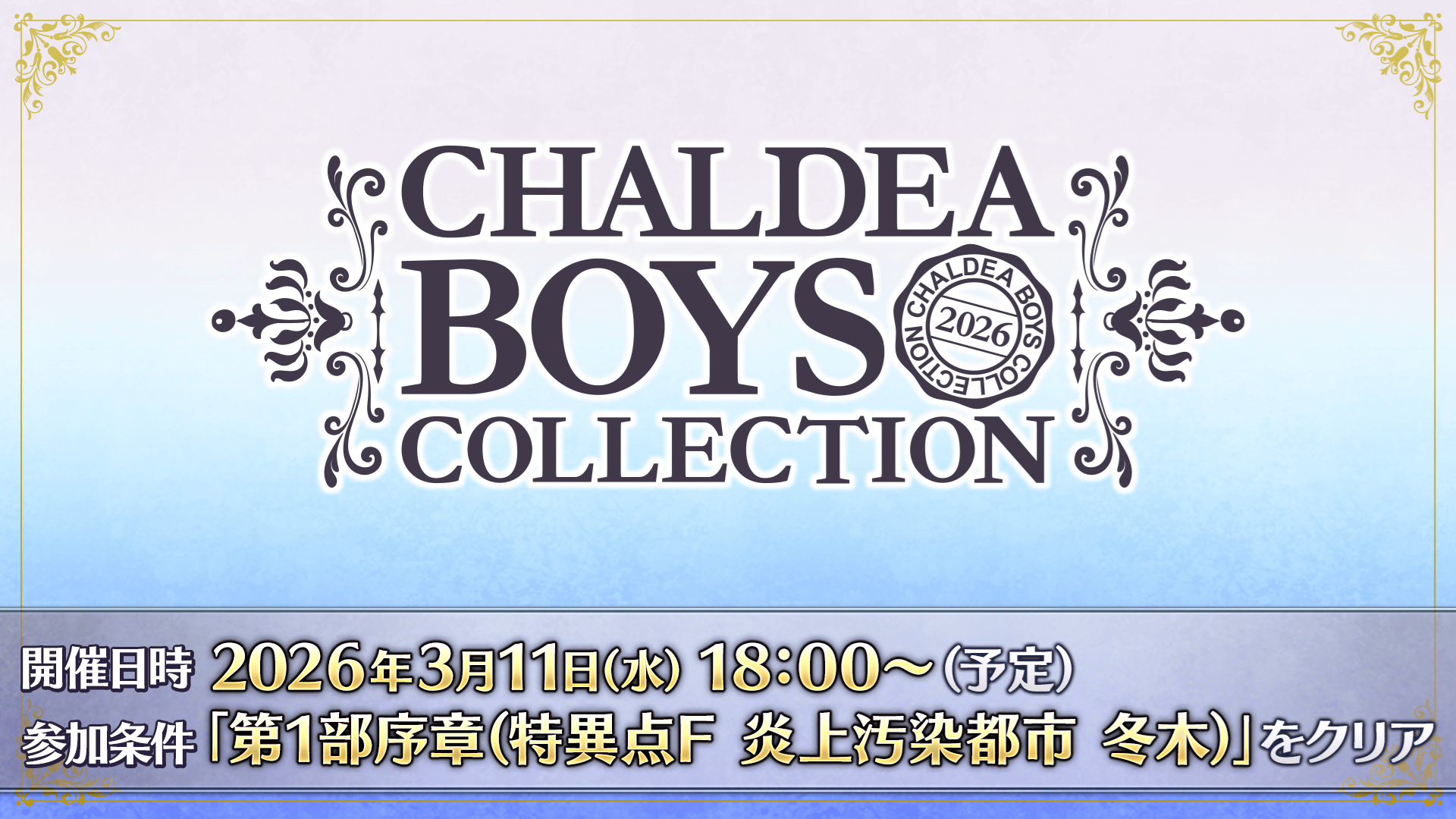 2026年3月11日(水) 18:00より開催を予定している「CBC2026(カルデアボーイズコレクション2026)」の情報を発表いたしました。