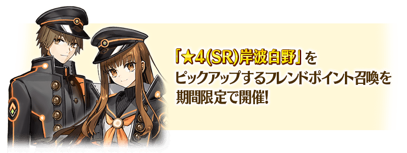 本召喚における「★4(SR)岸波白野」の召喚確率は、通常のフレンドポイント召喚の3倍となっております。
