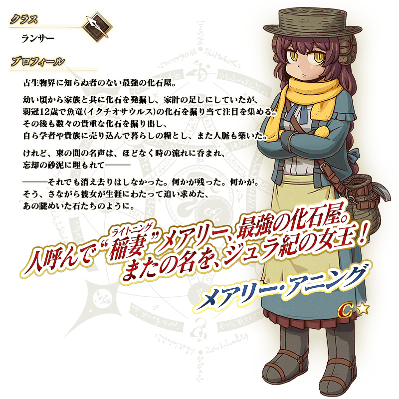 ※上記の「★1(C)メアリー・アニング」のイラストとセイントグラフは霊基再臨第2段階のものです。