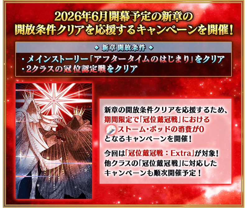 限定 『新章開放条件クリア応援「冠位戴冠戦:Extra」ストーム・ポッド消費0!キャンペーン』開幕記念 ログインボーナス開催!
