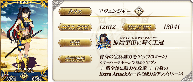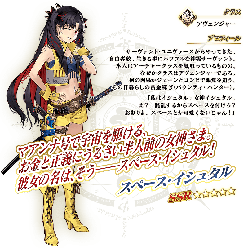 ※上記の「★5(SSR)スペース・イシュタル」のイラストとセイントグラフは霊基再臨第2段階のものです。