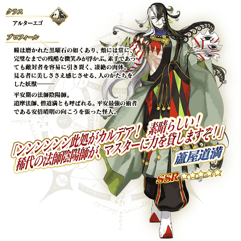 ※「★5(SSR)蘆屋道満」は、霊基再臨してもセイントグラフおよびバトルキャラなどが封印されており第2段階までしか変化しません。