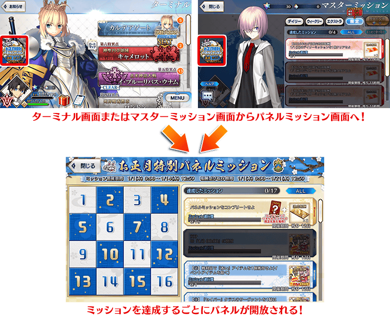 「お正月特別パネルミッション」は日ごとにミッションが追加され、各ミッションを達成するごとに対応したパネルが開放されて、それぞれのミッションに応じた報酬を獲得することができます。