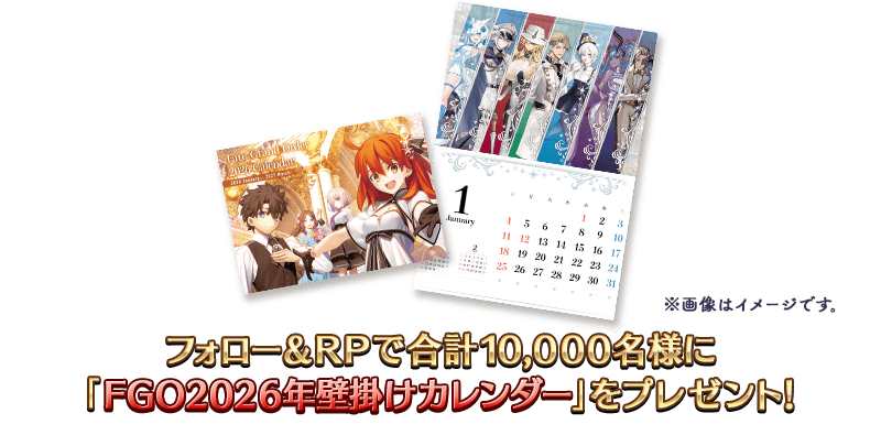 下記の期間中、「Fate/Grand Order」のX(Twitter)公式アカウントをフォロー&対象のポストをリポストしていただくことで、「FGO2026年壁掛けカレンダー」を抽選で合計10,000名様にプレゼント!