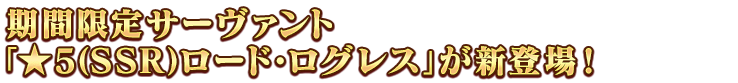 開催中の「ニューイヤー2026 ロード・ログレスピックアップ召喚」にて、期間限定サーヴァント「★5(SSR)ロード・ログレス」が新登場!