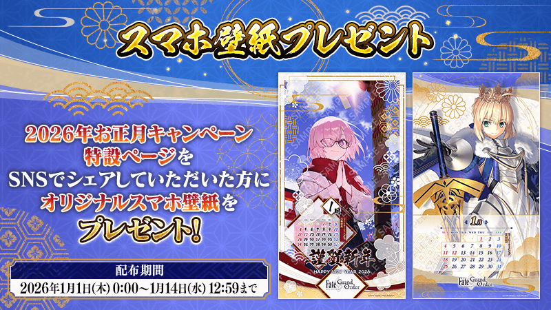 【お正月特設ページや公式アカウントにてプレゼント実施中!】 [期間限定]特設ページにてスマートフォン向け壁紙をプレゼント! [期間限定]Fate/Grand Order2026年お年賀プレゼントキャンペーン